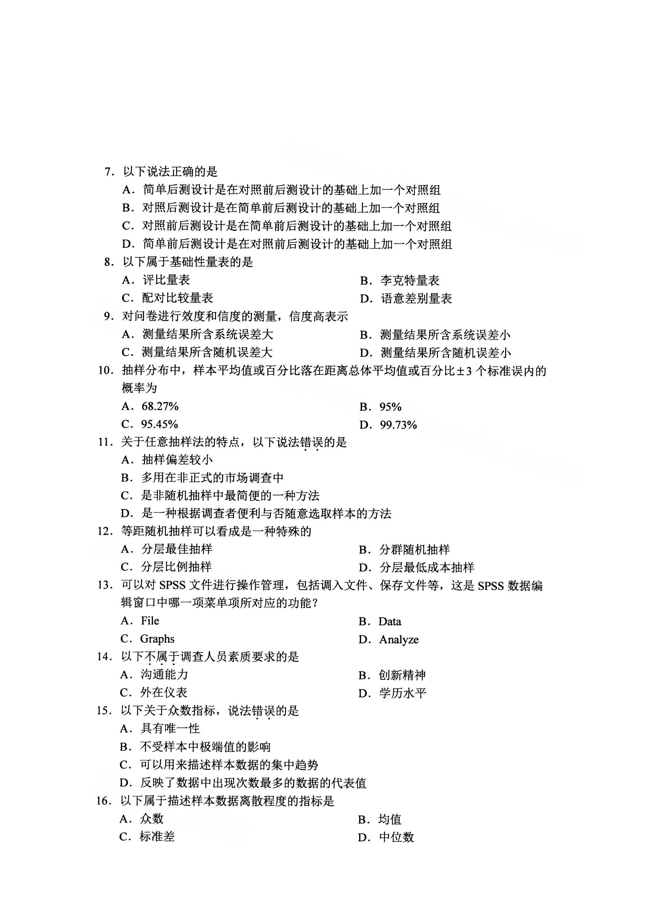 2021年4月湖南自考市场调查与预测(00178)真题试卷