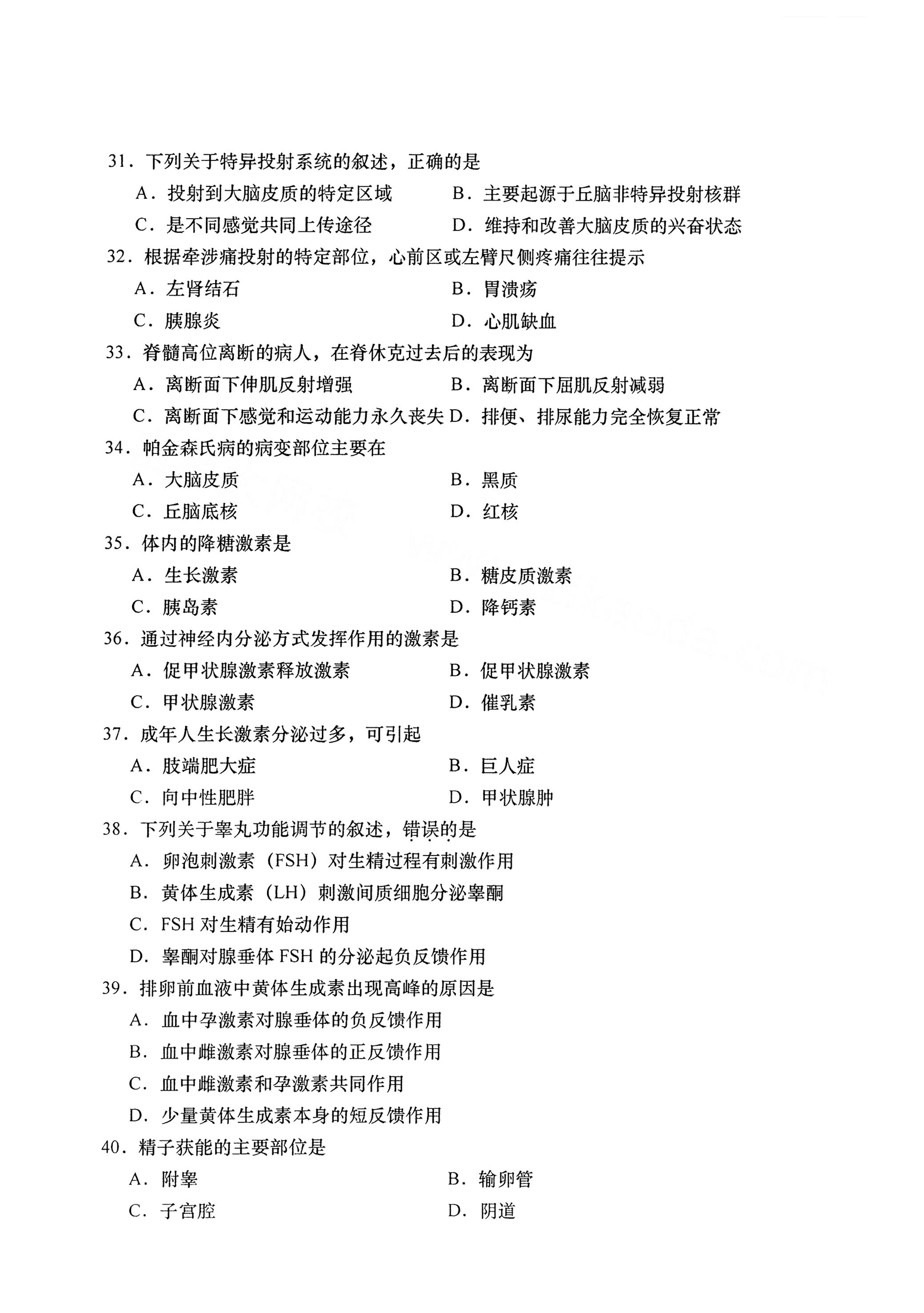 南自考生理学真题试卷湖南自考网